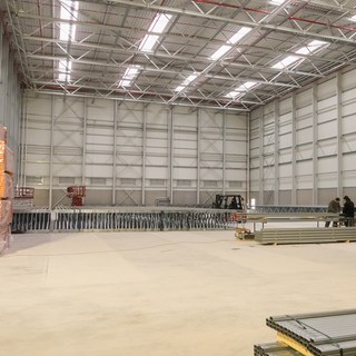Anfang 2016 wurde mit den Bodenschleifarbeiten für die Fahrspuren in den neun Gängen der 3.200 qm großen Lagerhalle begonnen.