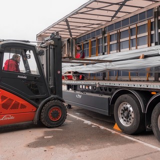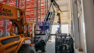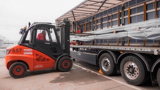 Den Warentransport übernehmen unter anderem drei Kombifahrzeuge der Linde K-Serie. Diese sind mit einem verstärkten Hubgerüst ausgestattet, um die Last von bis zu 650 kg auch in 16 Metern Lagerhöhe sicher abzustellen. In dieser Höhe sollten die Bediener schwindelfrei sein und ein Training zur Höhenrettung absolviert haben.
