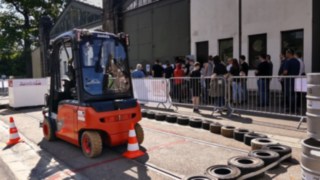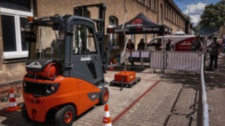 Neben dem vollen Programm des „17. Kappler Straßenbahnfestes“ mit historischen Bus- und Bahnfahrten, Ausstellungen, Vorträgen und Kinderprogramm gab es auch rund um den StaplerCup Aktionen für Großen und Klein. An zwei Parcours durften alle Nicht-Staplerfahrer an die Linde-Geräte: am „Labyrinth“ und am „Heißen Draht“. Hier war die Fahrfunktion des Staplers ausgeschaltet – die Aufgaben wurden mittels Drehgerät oder Vorschubgabeln gelöst.
